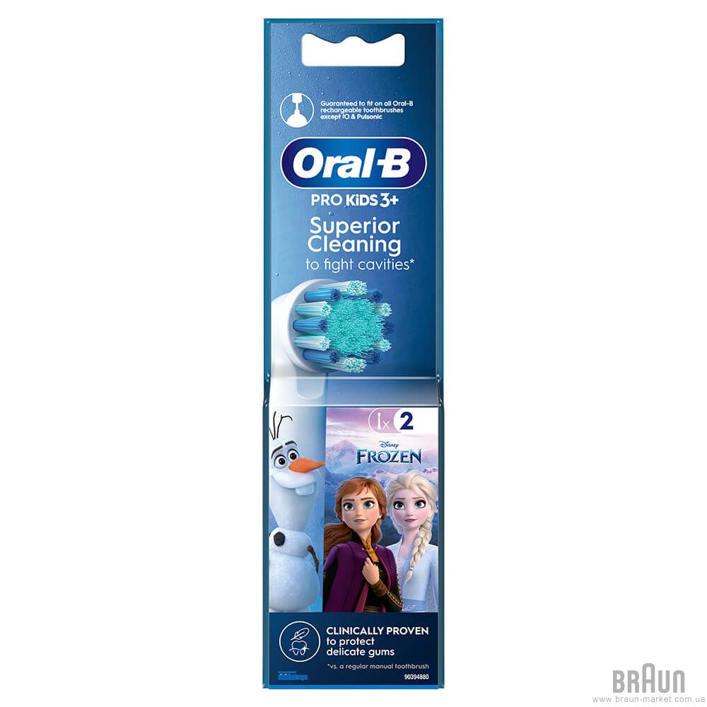 Рекомендуемая стоматологами сменная насадка Oral-B Kids 3+ с веселыми героями мультфильма Disney «Ледяное сердце», обеспечивает бережную, однако эффективную чистку зубов вашего ребенка. Очень мягкие щетинки и маленькая круглая головка специально созданы для детей и совместимы со всеми электрическими зубьями.