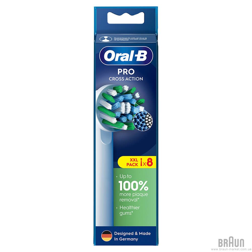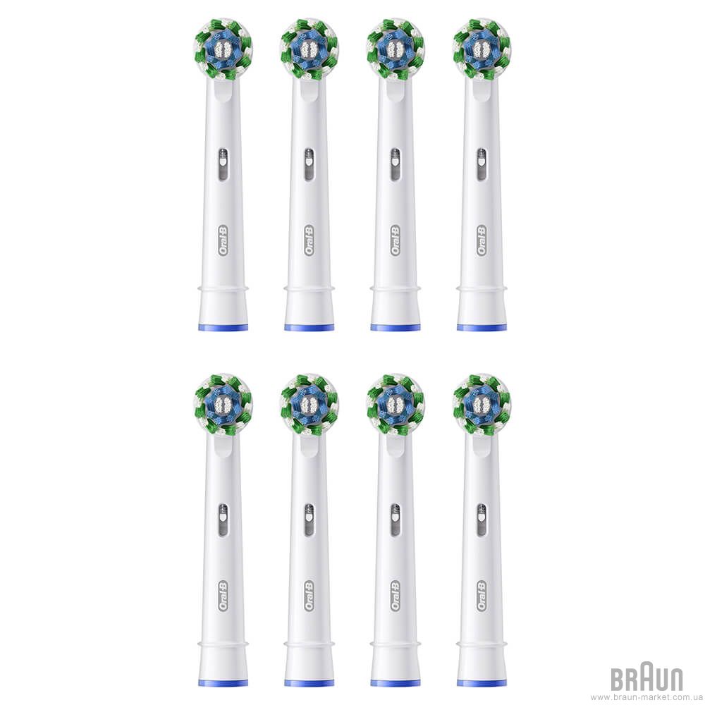 В комплекте 8 сменных насадок Oral-B Pro Cross Action EB 50 RX. Для ежедневной чистки.