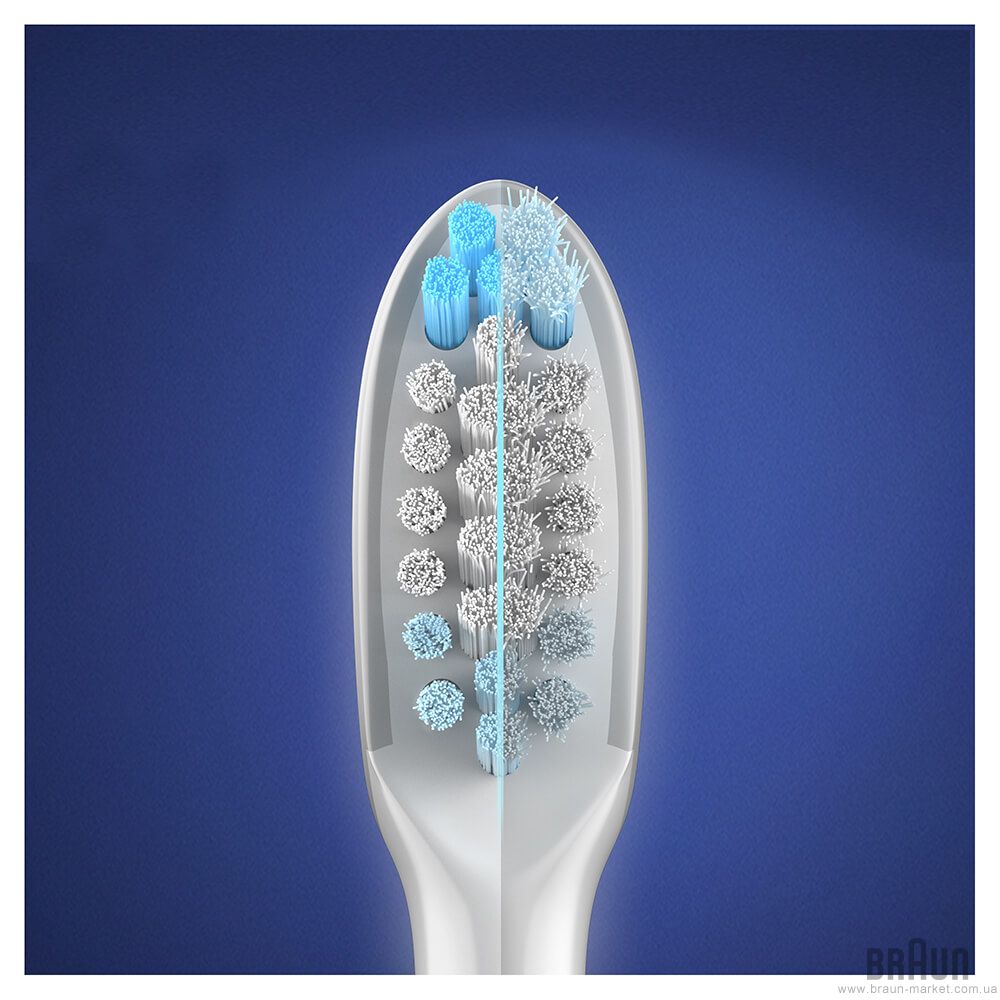 - Удлиненная сменная насадка удаляет больше зубного налета, чем обычная зубная щетка, с помощью деликатной ультразвуковой технологии.