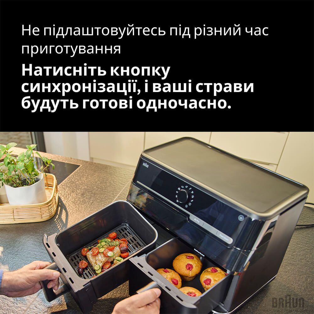 Мультипечь Braun TD 5073 IBK относится к серии TwinCook 5. Мощность: 2850 Вт. Объем двух чаш с антипригарным керамическим покрытием: 10 л (каждая по 5 л). Два независимых регулируемых термоста: 80–220 °C. Функции Sync и Match (дублируйте настройки, чтобы приготовить больше еды с помощью функции Match, или нажмите Sync, если вы хотите, чтобы еда была готова одновременно). Цифровой таймер. 20 автоматических программ. Сенсорное управление. Автоотключение. Чаши и решетки легко снимаются и их можно мыть в посудомоечной машине.