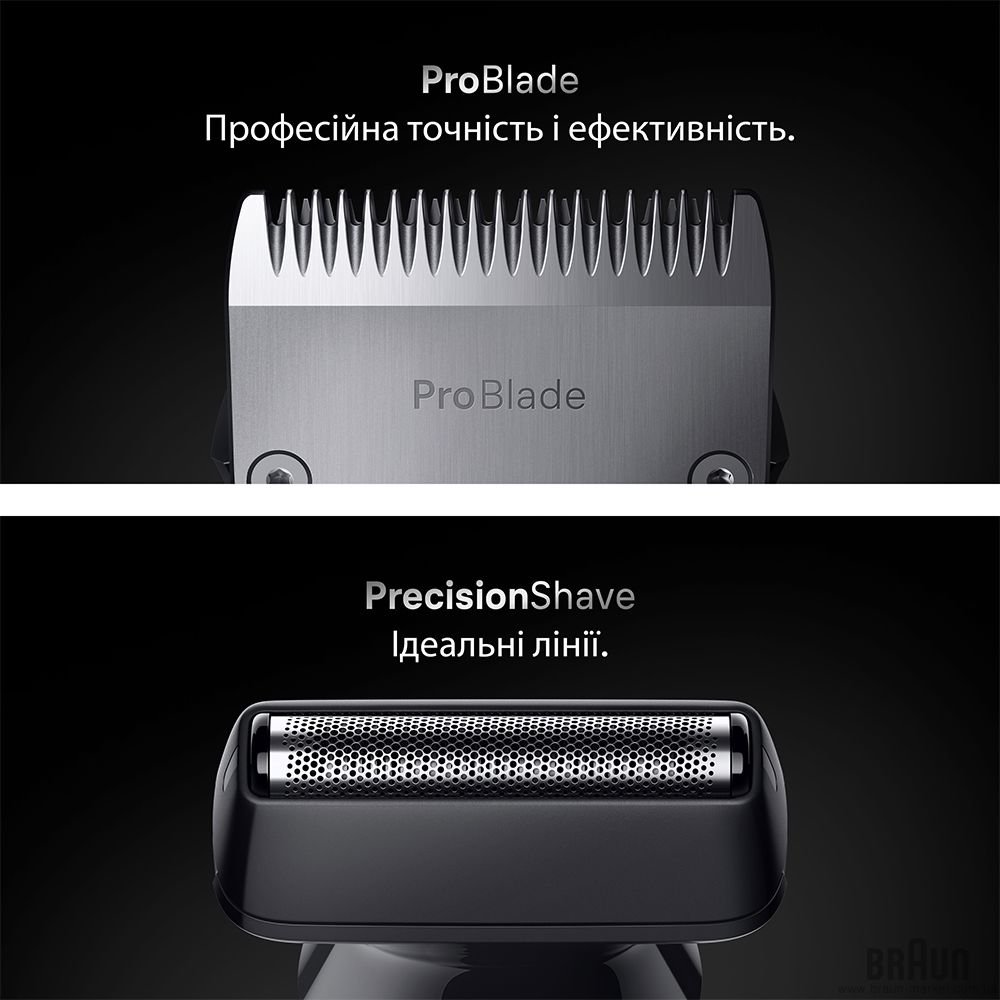 Триммер для бороды, волос на голове, носа и ушей, для тела. Autosensing motor. Два регулируемых гребня (на 3-11 мм и на 13-21 мм). Две насадки на 1 и 2 мм. Точная насадка для детализации. Насадка-бритва. Насадка для носа и ушей. Дополнительное сменное лезвие для тела. Насадка для чувствительных участков тела. Триммер оснащен 14-ю параметрами длины с шагом 2 мм. Питание: от Li-ion аккумулятора. Время работы от аккумулятора 120 мин. Время зарядки 90 мин. LED индикатор состояния аккумулятора. Быстрая зарядка за 5 мин. Зарядное устройство адаптируется к напряжению сети любой страны мира. Самозатачивающиеся ножи с неограниченным сроком службы. Чехол. Щеточка для чистки.