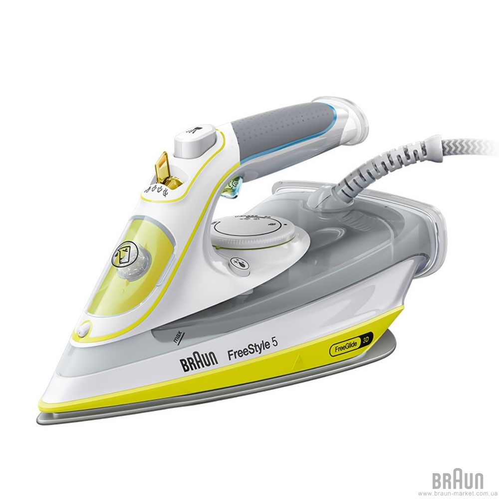 Утюг Braun SI 5016 YL серии FreeStyle 5. Мощность: 2600 Вт. Инновационная, закругленная с задней стороны, подошва SuperCeramic 3D FreeGlide обеспечивает плавное скольжение на 360 градусов, без задевания пуговиц, карманов и молний. Паровой удар: 210 г/мин. Регулируемая подача пара: 0-50 г/мин. Объем резервуара для воды: 300 мл. Вертикальное отпаривание. Система антинакипь и антикапля. Паровой носик. Цвет: белый/желтый.