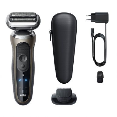 - Тройная бритвенная система в электробритвах Braun Серии 7 гарантирует превосходный результат за счет того что справляется одинаково хорошо как с длинными так и с короткими волосками.