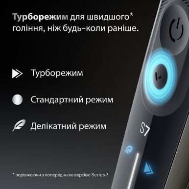 - Бритвы седьмой серии имеют три режима бритья. Интенсивный и бережный – это дополнительные режимы для применения на тех участках лица, которым необходимы особые условия бритья.