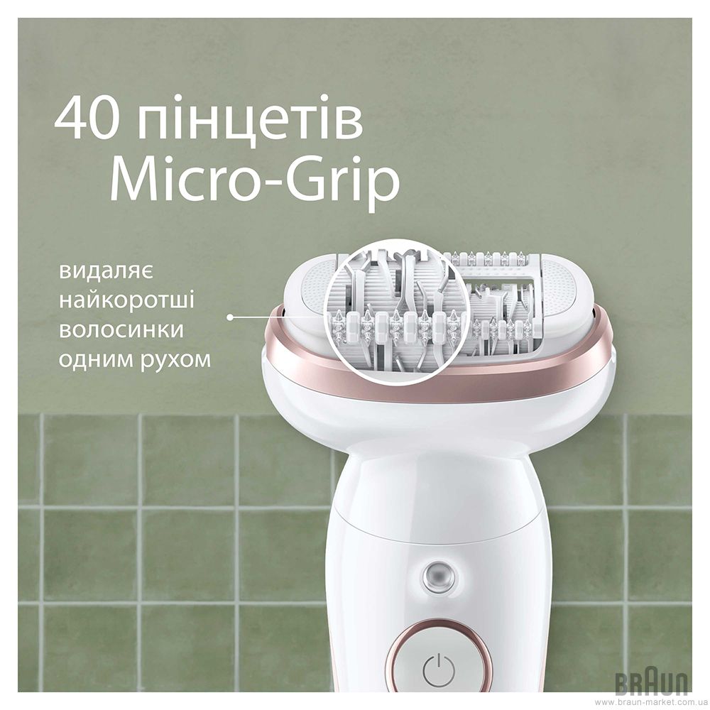 Тип епіляційної головки: пінцети. Кількість швидкостей: 2 + функція Smart Touch - автоматично адаптує швидкість і направляє вас для кращих результатів. Кількість пінцетів: 40. Технологія MicroGrip Tweezer. Підсвічування. Подвійна масажна система. Щіточка для чищення. Косметичка. Живлення: від акумулятора.