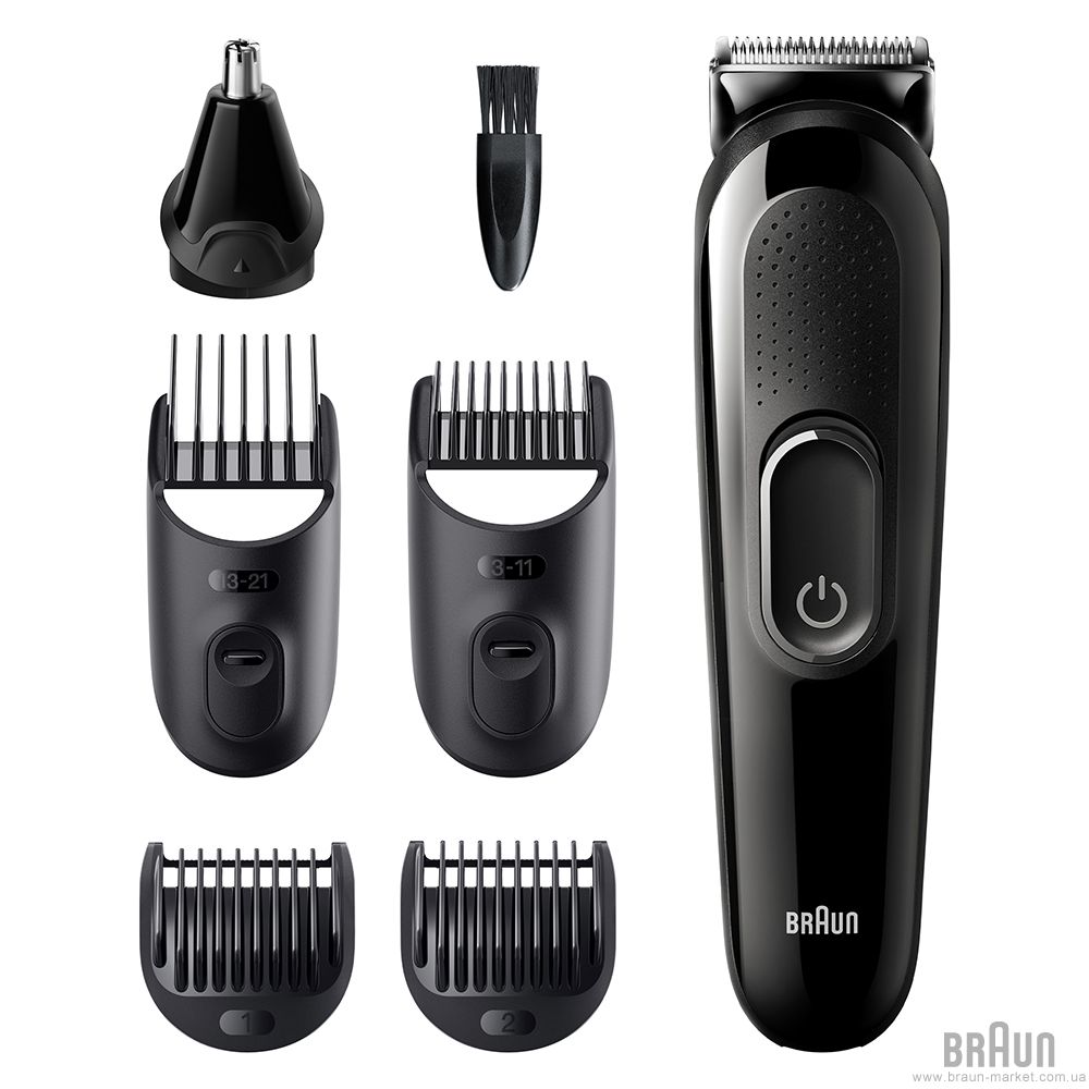 Тример для бороди, волосся на голові, носа і вух. Два регульованих гребня (на 3-11 мм і на 13-21 мм). Насадки на 1 і 2 мм. Насадка для носа і вух. Тример оснащений 13-ма параметрами довжини (регулюються по 2 мм). Живлення: від акумулятора. Час роботи від акумулятора 50 хв. Час зарядки 600 хв. Зарядний пристрій адаптується під напругу мережі будь-якої країни світу. Самозаточуючі ножі з необмеженим терміном служби.