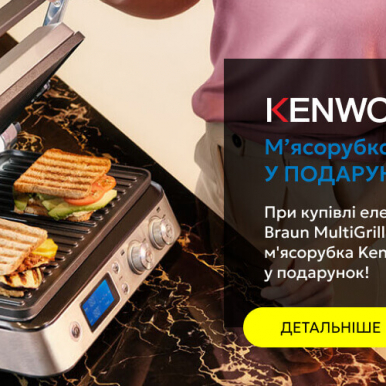 При купівлі електрогриля Braun MultiGrill 9 - м'ясорубка Kenwood MG 360 у подарунок!