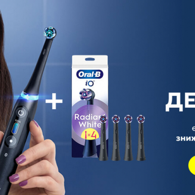 Купуйте одну з нижчеперелічених зубних щіток Oral-B у нас в магазині разом з набором з'ємних насадок (4шт) за зниженою ціною. Оформляючи покупку через наш сайт, в розділі «Разом дешевше» в картці обраного товару натисканням на кнопку «Купити комплект» та отримайте знижку 40%* на набір зубних насадок. Безкоштовна** доставка по всій Україні.