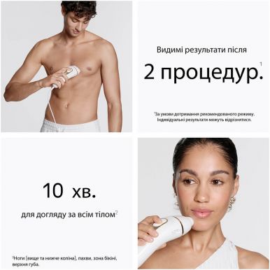 Процедура видалення небажаного волосся більше не проблема з фотоепілятором Braun! Хочете мати гладеньку шкіру, і позбутися від набридливих волосків надовго? Ефект від дії фотоепілятора ви помітите вже після першого використання. Він присипляє волосяні фолікули і за допомогою світлових імпульсів призупиняє їх зростання. Надалі рекомендується провести додатково від 4 до 12 процедур для того щоб зафіксувати результат на тривалий час.