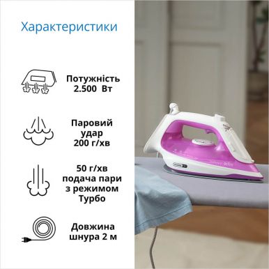 - Система «Антикрапля» запобігає скупченню конденсату води, щоб не залишати плям на одязі. А система «Антинакип» подбає про те, щоб підошва була чистою і не бруднила одяг.